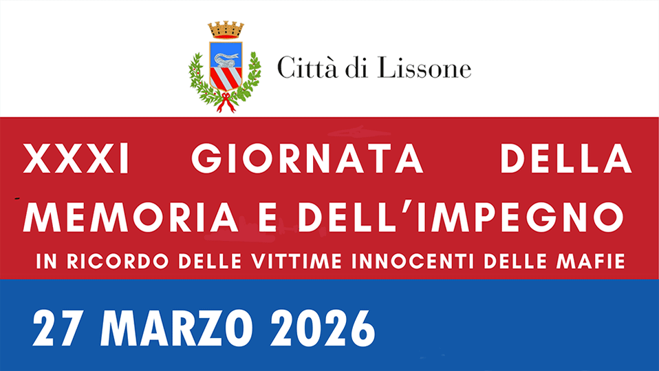 Per celebrare la Giornata della Memoria e dell’Impegno in ricordo delle vittime innocenti delle mafie, giunta quest’anno alla sua trentunesima edizione, l'Amministrazione Comunale promuove un momento commemorativo e di impegno civile alla presenza delle Autorità cittadine, militari e religiose, delle Associazioni d'arma e di volontariato del territorio e con la partecipazione attiva di una delegazione di studenti degli Istituti scolastici di Lissone.