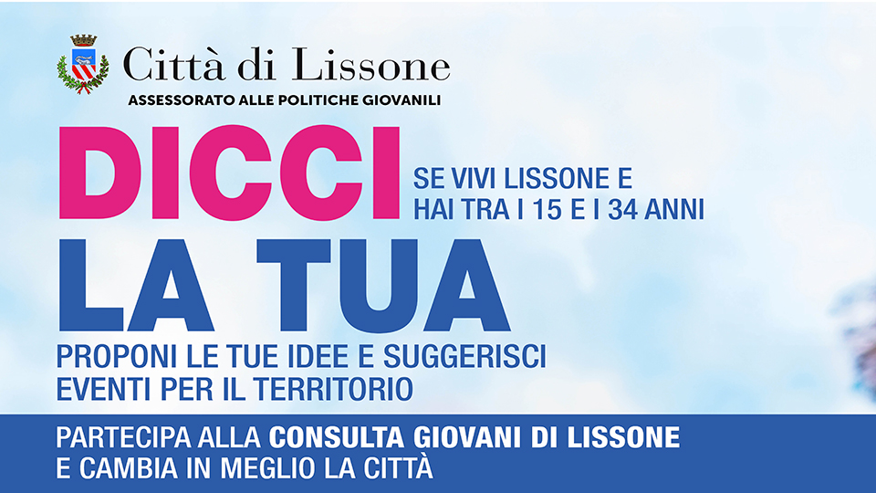 L’Assessorato alle Politiche Giovanili del Comune di Lissone invita i giovani a diventare protagonisti attivi nella vita sociale, politica e culturale della città entrando a far parte della Consulta Giovani, strumento apolitico di partecipazione alla vita della comunità.