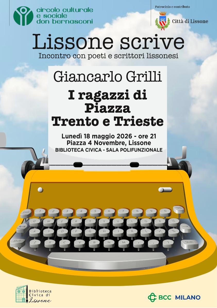 Giancarlo Grilli presenta il suo romanzo I ragazzi di Piazza Trento e Trieste, pubblicato nel 2024. Il romanzo narra di un gruppo di amici oggi poco più che quarantenni, che ripercorre tra fatti reali ed altri solo immaginati dallo scrittore, gli anni della gioventù mentre partecipano a una vicenda irreale in cui veri e falsi sentimenti si mescolano tra loro per dar corpo a speranze e prospettive mai realizzate.