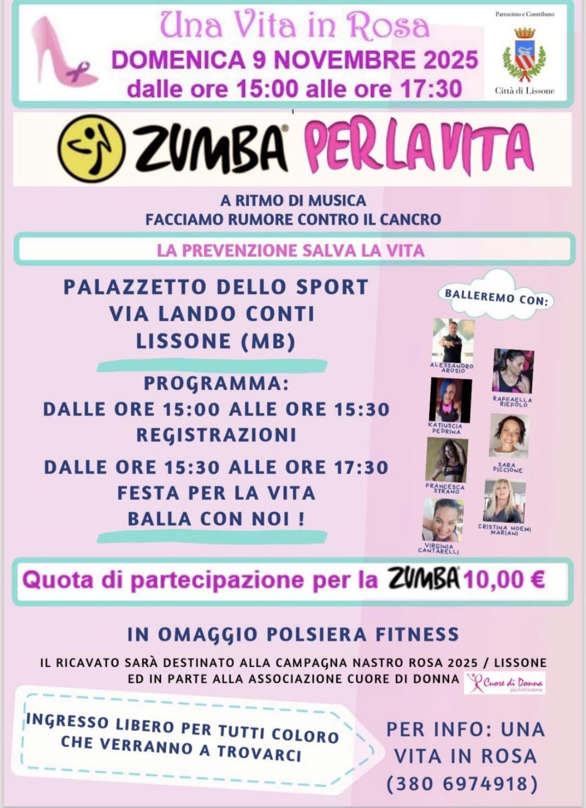 Al Palazzetto dello sport un momento conviviale con musica, fitness e sorrisi per richiamare le donne alla prevenzione del tumore al seno. L'evento è organizzato dell'Associazione Una Vita in Rosa. L'ingresso è libero.